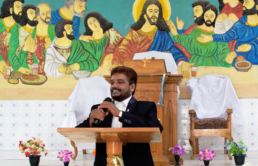 • He is gifted with Prophecy and healing power. At an young age when his parents were out for ministry he being the eldest would look after his younger siblings and has even took active initiation in encouraging kids of his village to sunday schools slowly bringing the youth to youth meetings guiding them spiritually.